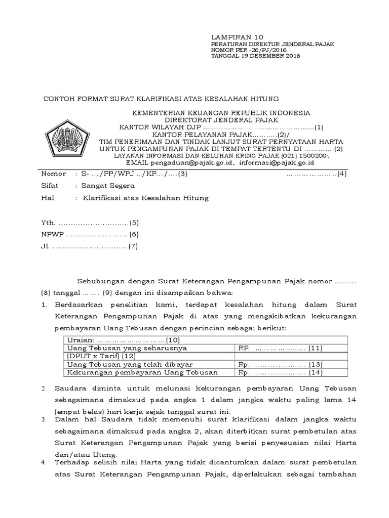 Mengubah beberapa bagian dalam Contoh Format Surat Klarifikasi atas Kesalahan Hitung sebagaimana ditetapkan dalam Lampiran XIX Peraturan Direktur Jenderal Pajak Nomor PER-07 PJ 2016 dan perubahannya sebagai berikut. Untuk kasus ini PKP juga harus membuat klarifikasi faktur pajak sebelum membatalkan faktur pajak tersebut. Contoh surat pernyataan tidak akan mengulangi kesalahan yang sama penyesalan terhadap kesalahan yang dilakukan kepada sesama manusia seringkali dibutuhkan suatu pernyataan yang tegas dan terikat secara hukum.